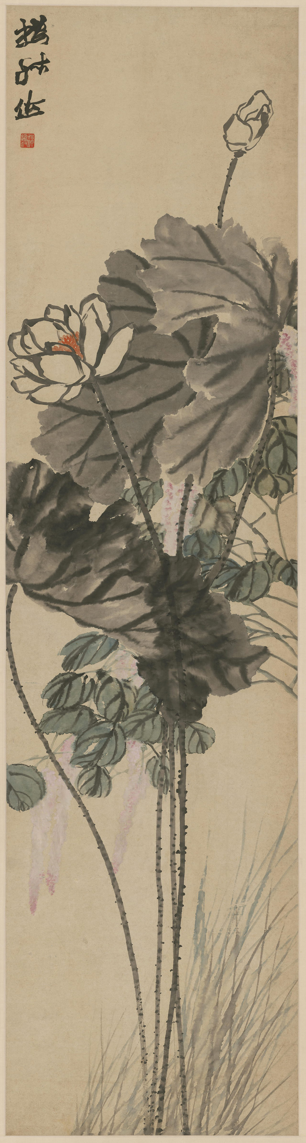 形制尺寸:条屏,纸本,设色,176.9×45.6厘米