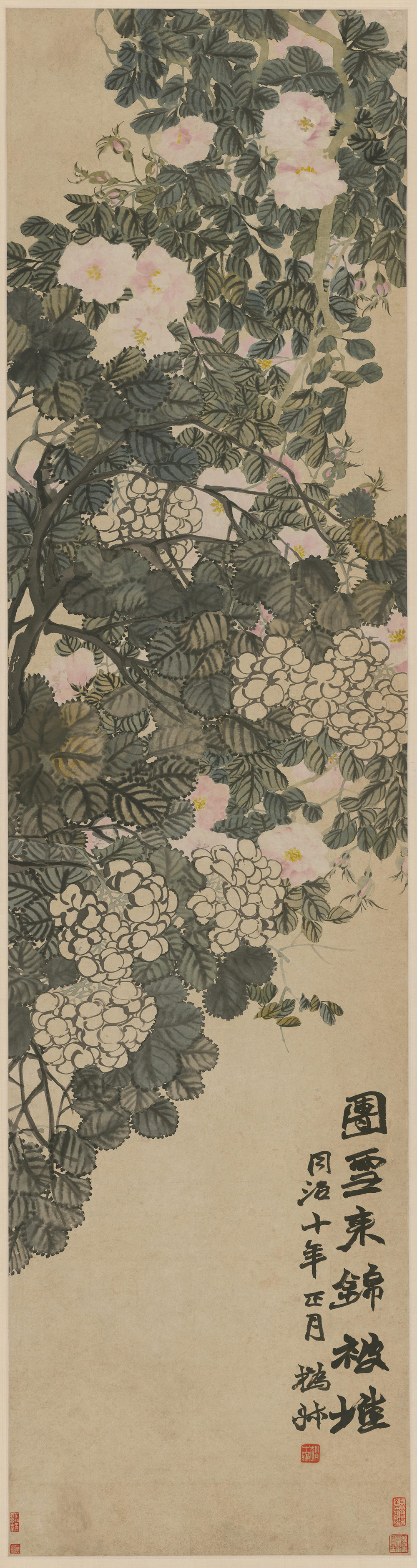 形制尺寸:条屏,纸本,设色,176.9×45.6厘米