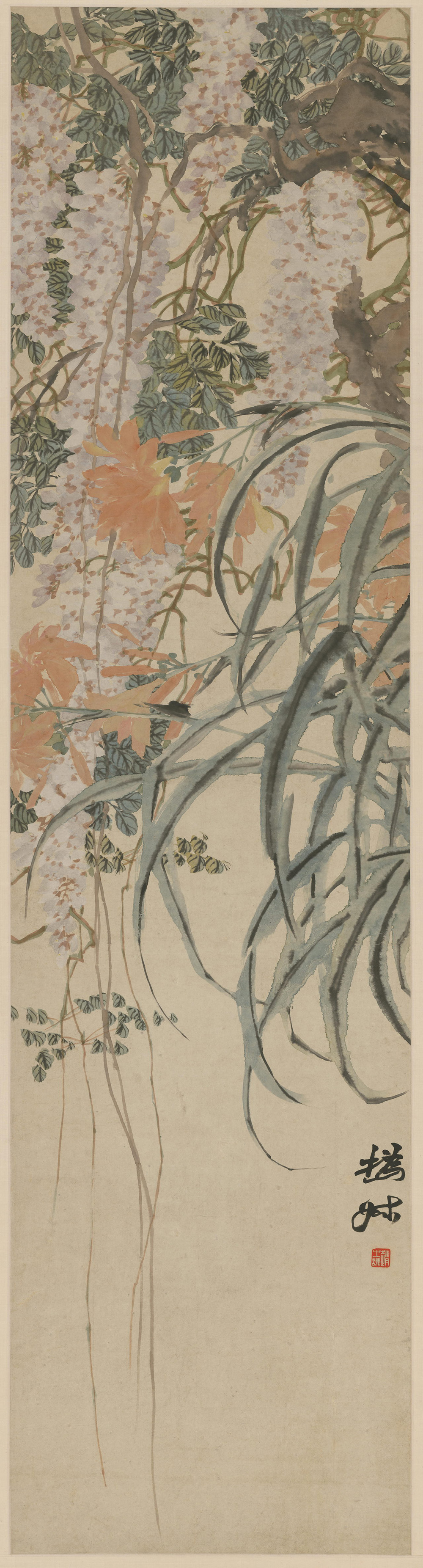 形制尺寸:条屏,纸本,设色,176.9×45.6厘米