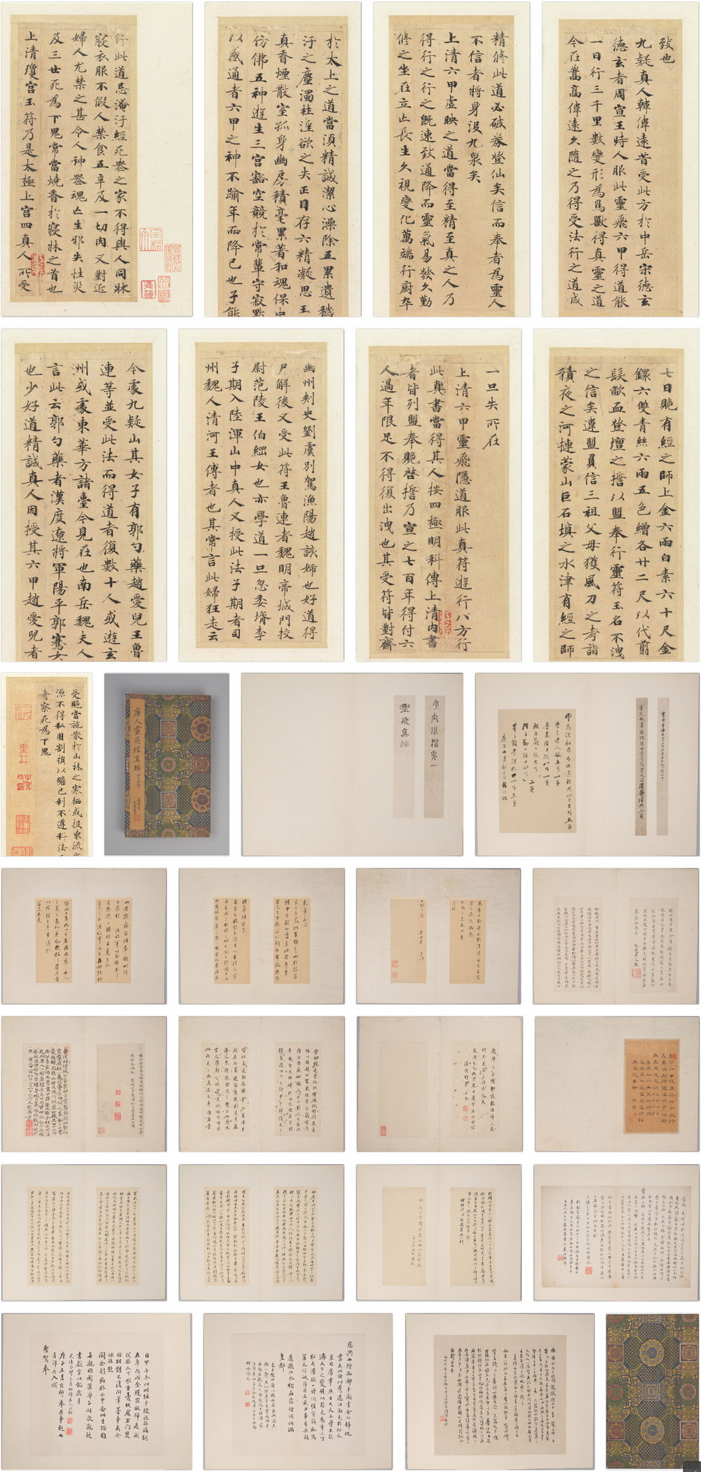 《灵飞经》四十三行墨迹版,无疑传世书迹中的经典,这件唐代最著名的小楷之一,堪称其馆藏中国书画中的“镇馆之宝”级别的名迹,在中国书法史中有着极为深远的影响。此本即为墨迹本,惜并非全本,现存四十三行,共九开,每开高二十点八厘米,宽八点九厘米,共六百八十五字。封面有翁万戈题签,册中附董其昌书札、翁心存手迹,有紫芝老人、陈甫伸、陈元龙、陈世倌、吴骞、翁同龢等诸家题跋。
