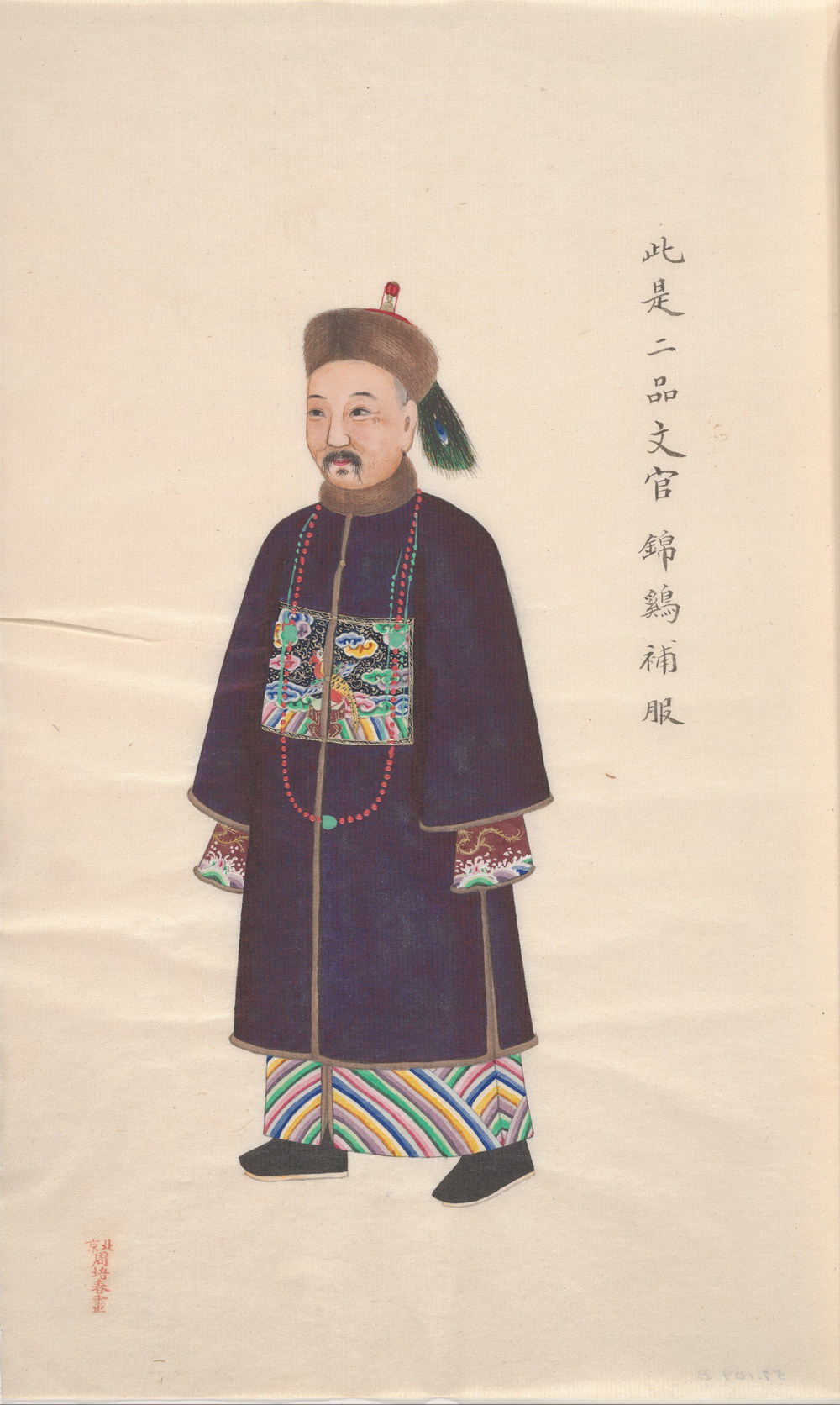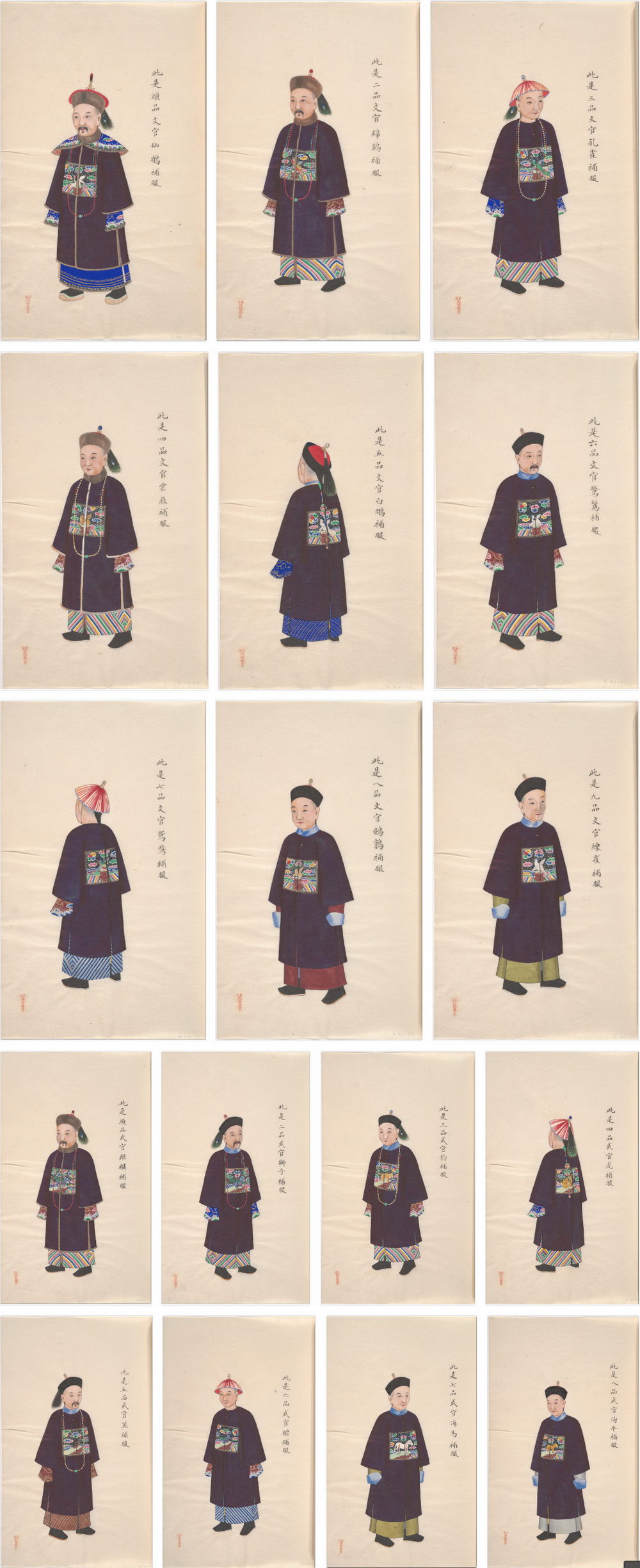全套共十七幅(应该有缺页),描绘的是文官头品至九品、武官头品至八品官服补子。
