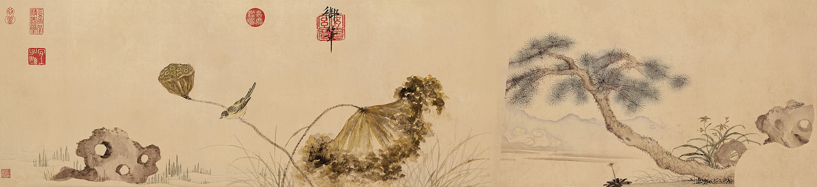 《莲浦松阴图》实为“莲浦”“松阴”两段。“莲浦”一段未损,“松阴”一段残缺一半。